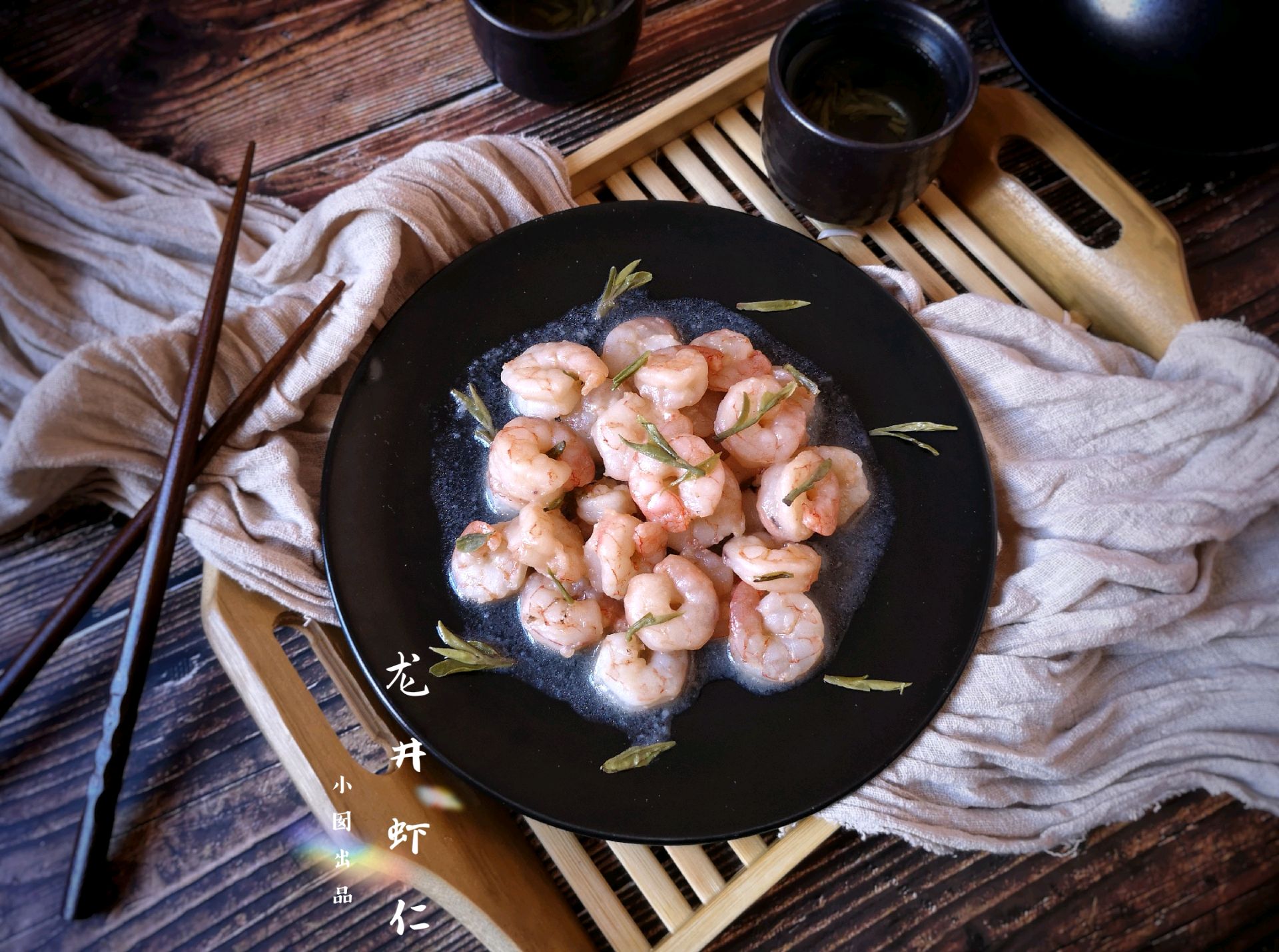 用龙井茶熬出的虾仁