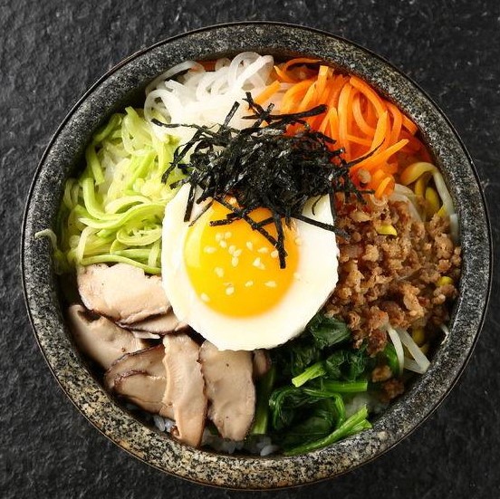 米饭、肥牛、鸡蛋、有机蔬菜、玉米粒、辣椒酱、紫菜