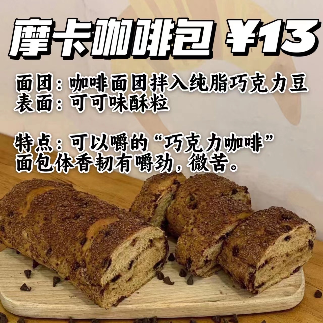 可以嚼的“巧克力咖啡” 面包体香韧有嚼劲,微苦