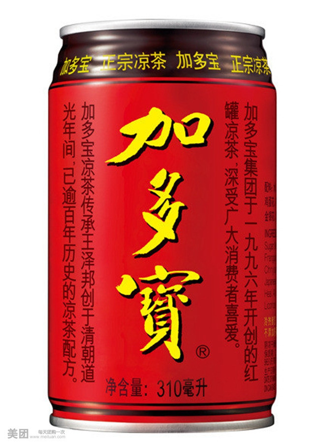 加多宝集团出品的凉茶依据传统配方,采用上等本草材料配制,秉承传统的蒸煮工艺,经由现代科技提取本草精华、调配而成;其内含菊花、甘草、仙草、金银花等具有预防上火作用的本草植物。