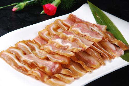 来自天蓬养猪场的天然饲料饲养的猪猪的耳朵部位。