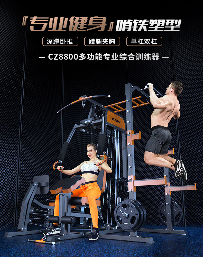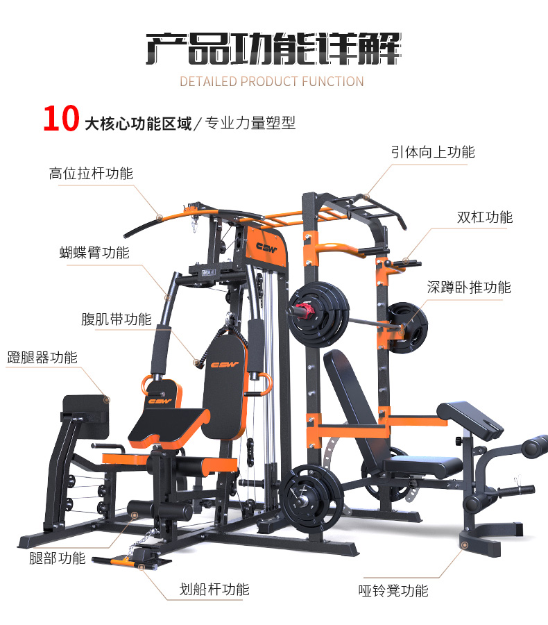 颜色分类: 综合训练器单机(不含杠铃及卧推凳) 综合训练器套装(含PU铃片120KG,2.2米铜套奥杆及多功能卧推凳)