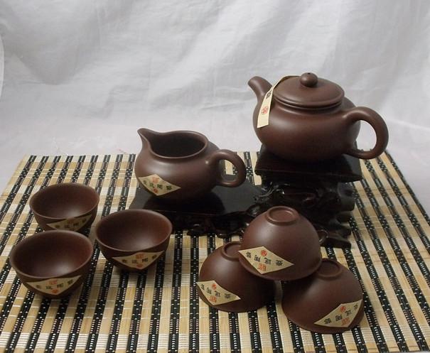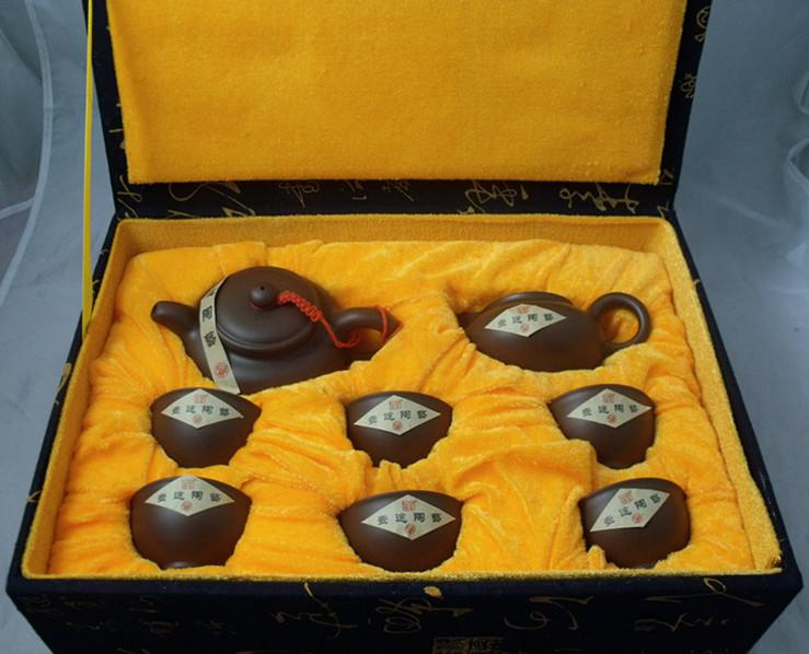 品名:8件套壶途紫砂工夫茶具 规格:长31cm*宽23cm*高10cm 组合:仿古紫砂壶一把、公平壶1个、杯子6个 外包装:锦盒
