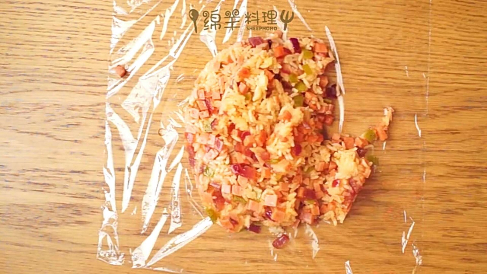取出后放入米饭,拌匀,再放入微波炉高火2-3分钟