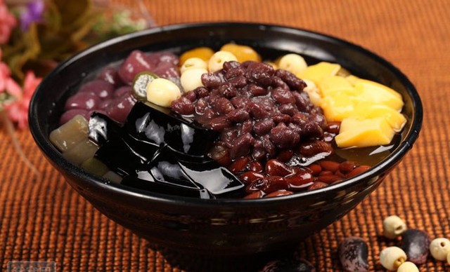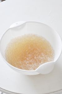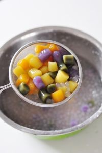 烧开水放入芋圆,中火煮到芋圆全部漂起。捞出立刻投入冰水中。彻底凉透和西米一起用纯净水冲一遍。