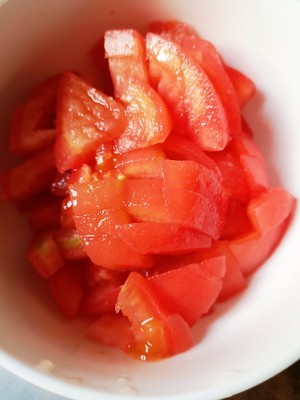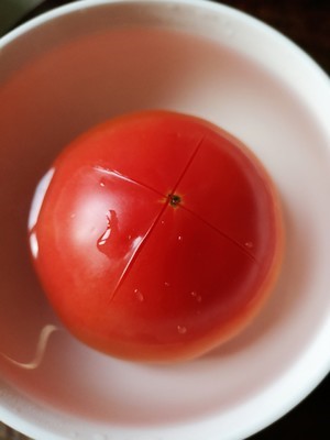 先用刀把西红柿上来个十字,用开水烫一下,把西红柿的皮剥了,这样吃起来口感更好。