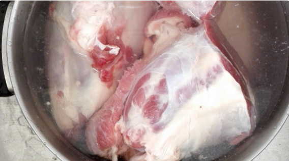 捞出,用冷水冲洗干净,冷水浸泡10分钟,紧实肉质
