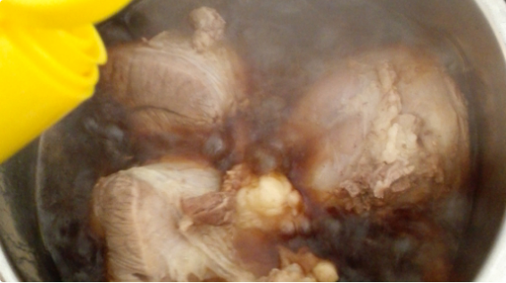 加盐,大火煮开改小火炖50分钟,焖3个小时入味