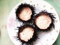 海胆本身有咸味,所以不用放盐。 如果追求好看,可在上面撒上葱花,香菜装饰一下。 不能蒸太时间,会老的,影响口感。
