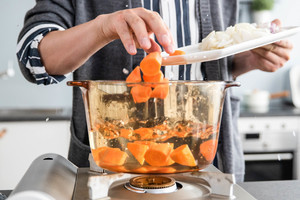 日式的咖喱鸡肉饭离不开洋葱、胡萝卜与土豆这三种配菜,这是独属于日本的味蕾记忆。看着清靓的汤水慢慢熬成浓厚的酱汁,锅里沸腾的泡泡也开始“啵噗啵噗”叫起来,满屋都是辛香的味道。