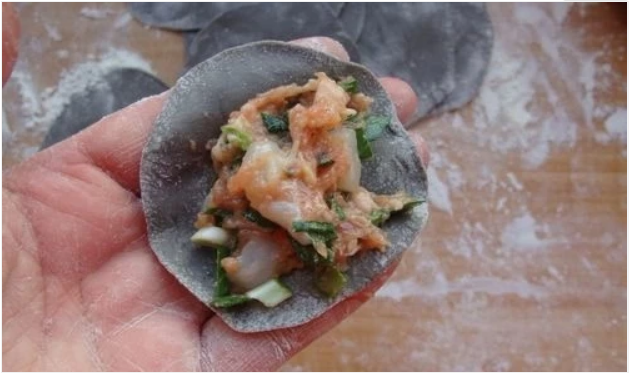 『墨鱼汁,墨鱼肉,饺子皮』