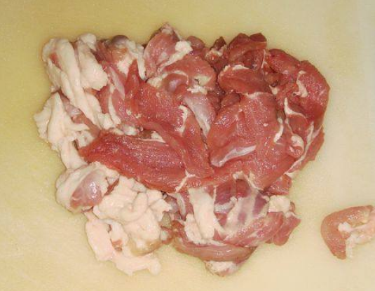 用刀将羊肉切成0.3公分薄厚的肉片