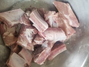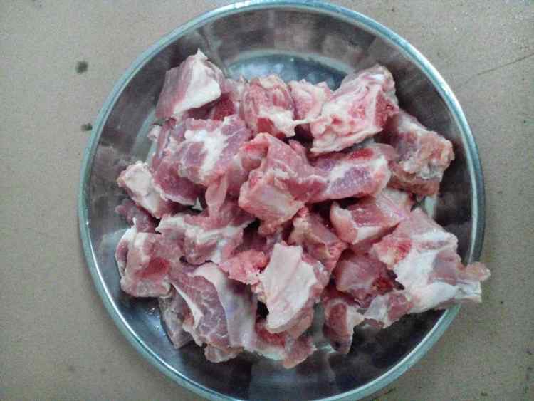 2.猪肋排过水并冲洗干净,将排骨放锅中加入水,中火烧开