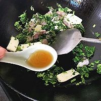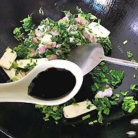 放入雪菜末、笋片、肉片,滑炒至瘦肉变色。