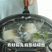 烧开一大锅水,加入20g料酒、姜片、香葱结,整齐放入鱼,小火烧开后撇去浮沫,加盖焖煮2~3分钟