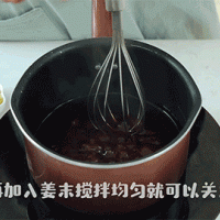 将步骤5的料汁搅匀后下锅,开小火边搅拌边煮开;浓稠起丝后加入姜末搅匀,关火
