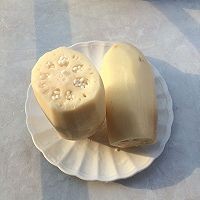 准备莲藕两节,挑选比较大些粗壮点的莲藕,孔大方便塞糯米。