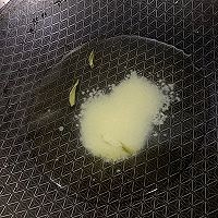 炒勺倒入茶水,加一勺鸡精化开