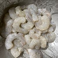 虾仁用料酒,淀粉,盐,蛋清,抓匀,冰箱冷藏1小时