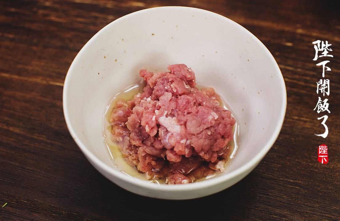 取小碗,将蛋清和猪肉馅倒入碗中,搅拌均匀