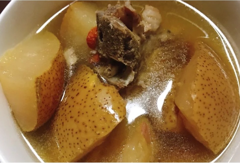 最后放一点点盐提味,润肺止咳清甜可口的雪梨排骨汤就完成了