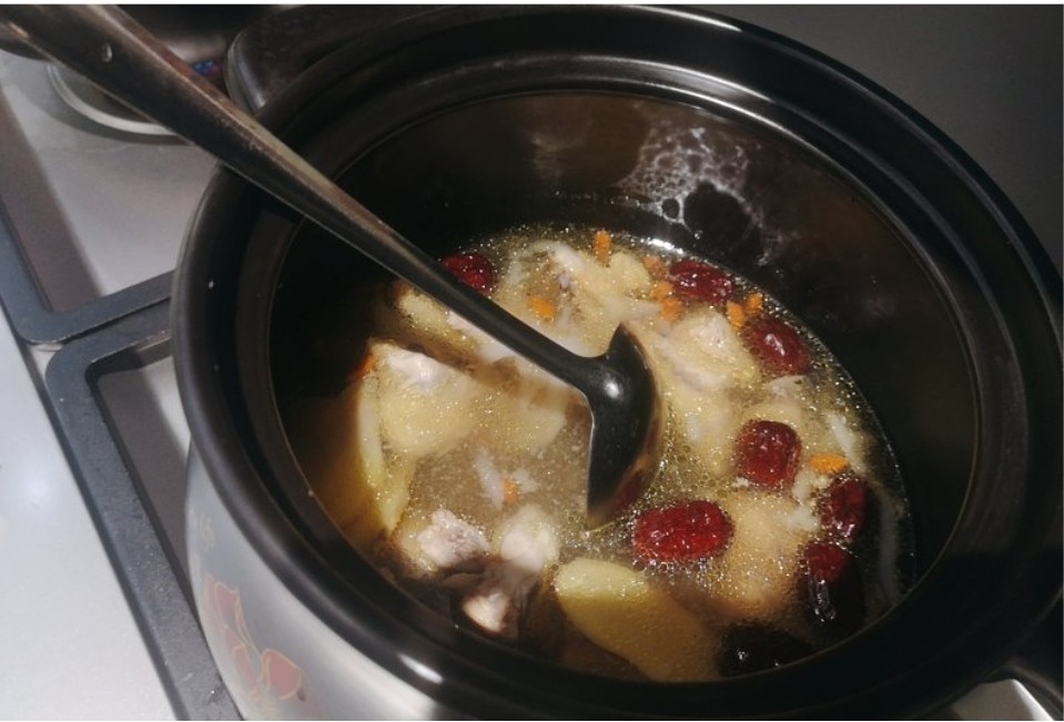 准备食材:红枣、枸杞、姜、椰子、鸡