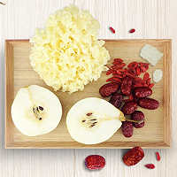 备好食材。 干银耳泡发,雪梨用食盐搓洗干净,红枣用刷子刷干净