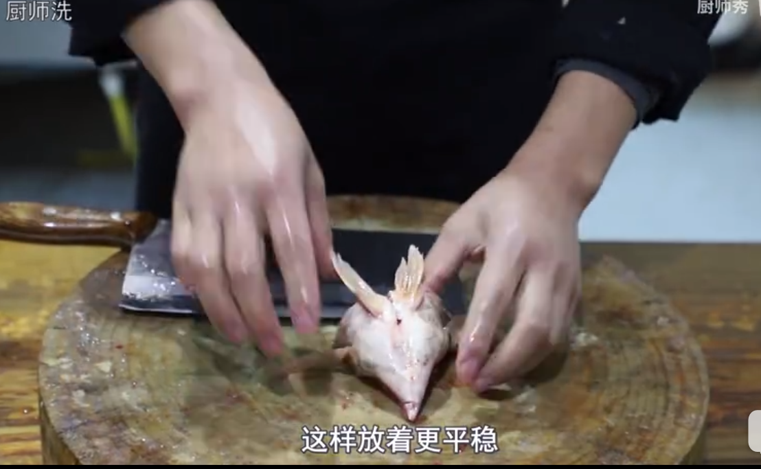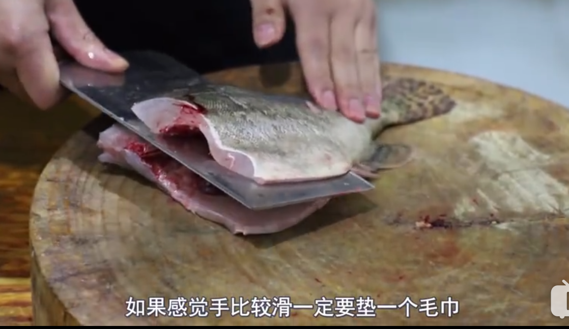 片鱼肉去除鱼刺,并在鱼肉上打花刀,不要将鱼皮切断