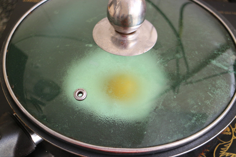 撒上几滴清水,盖上盖子,焖3分钟。