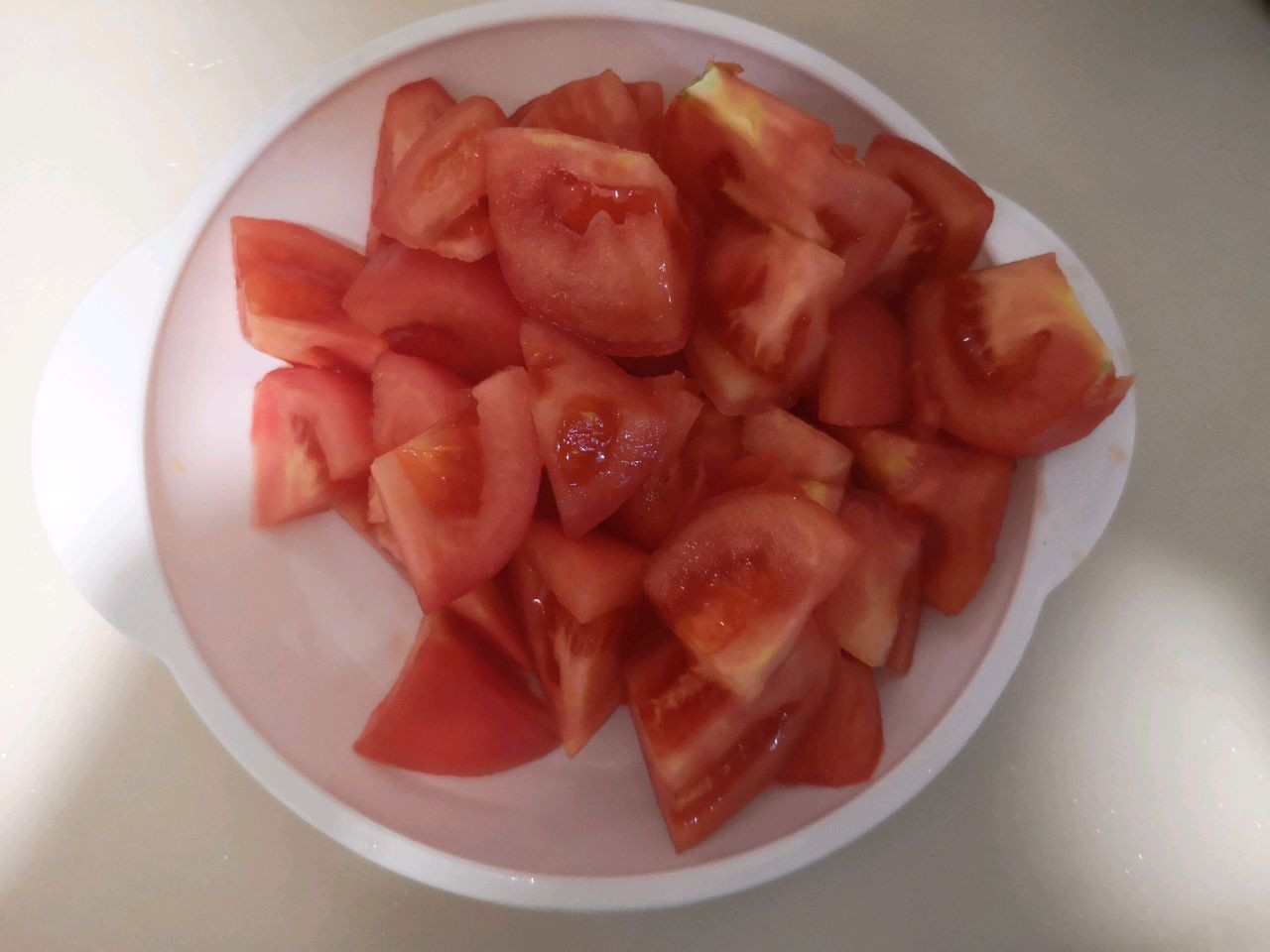 下油,热油后,请注意,这里题主省了拍照。正确步骤是: 1、先放番茄,炒出汁,盛出来。 2、把锅洗了,重新放油,热油,倒蛋液,把鸡蛋炒出来。 3、把番茄倒下去,混着炒。 【诀窍】就是要分开先炒,目的是先把番茄炒出浓郁的番茄汁。