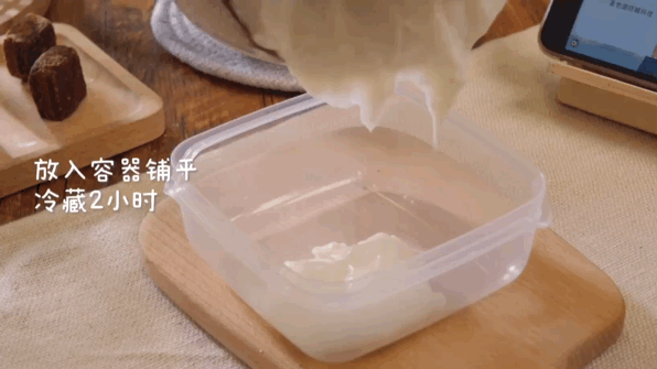 放入容器铺平冷藏2小时。