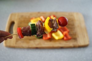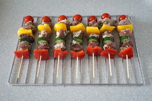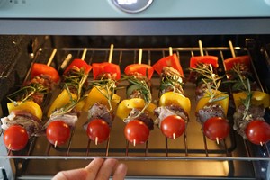 此时可以将烤箱预热,180℃,上下火,热风。然后就可以根据自己喜好将食材串在一起~