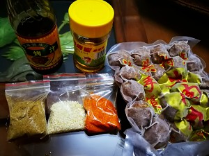 准备各种食材,解冻牛肉丸。