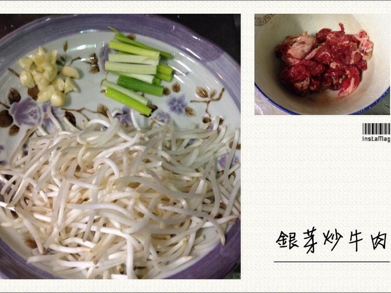 1、牛肉先醃10~15分钟2.葱切段3、豆芽菜洗净去头尾