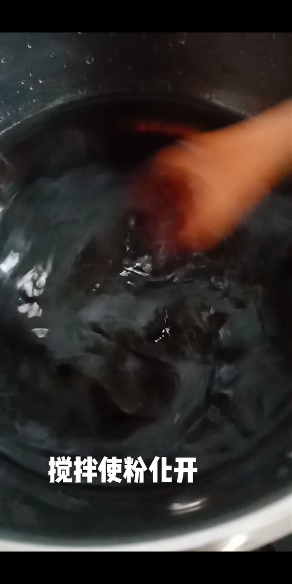 小锅内加400毫升凉水,加20克黑凉粉,搅拌融化
