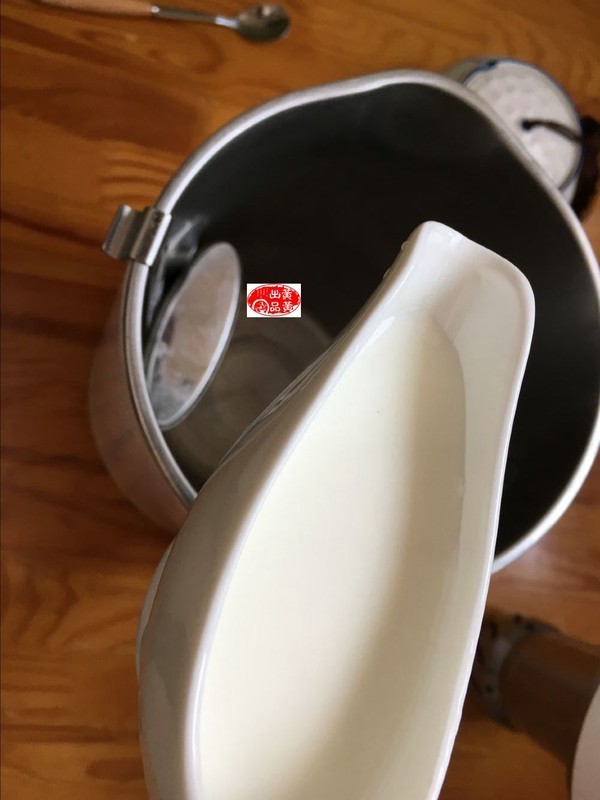 加入适量纯牛奶和纯净水后,豆浆机接通电源设置奶茶键。