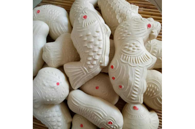 将两个面片摞起来,再对折,如图。用刀子在三分之二处切开,自里面掏出,整形成花样。不要切的太靠边,因为是鸡蛋和面,面饼的韧性不足,所以很容易断。