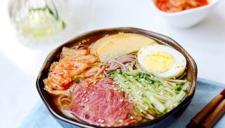 『荞麦冷面,泡菜,牛肉粉,生抽,韩式辣酱,熟芝麻』