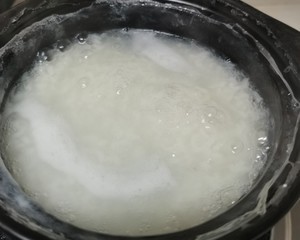 把炒好的虾头,切好的香菇粒放进去粥里继续煮,剥虾壳再把虾肉放进去,放盐胡椒粉,撒点切好的小葱,就成功了