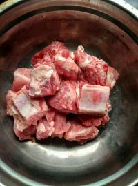 排骨砍成小节,清洗干净。