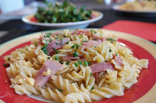 待水烧开,倒入意大利螺旋面中火煮10分钟左右,看个人喜爱软硬程度。煮好后,沥干水分待用。