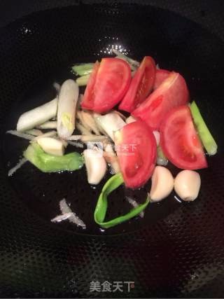 香味出来后放鳕鱼块翻炒片刻下料酒