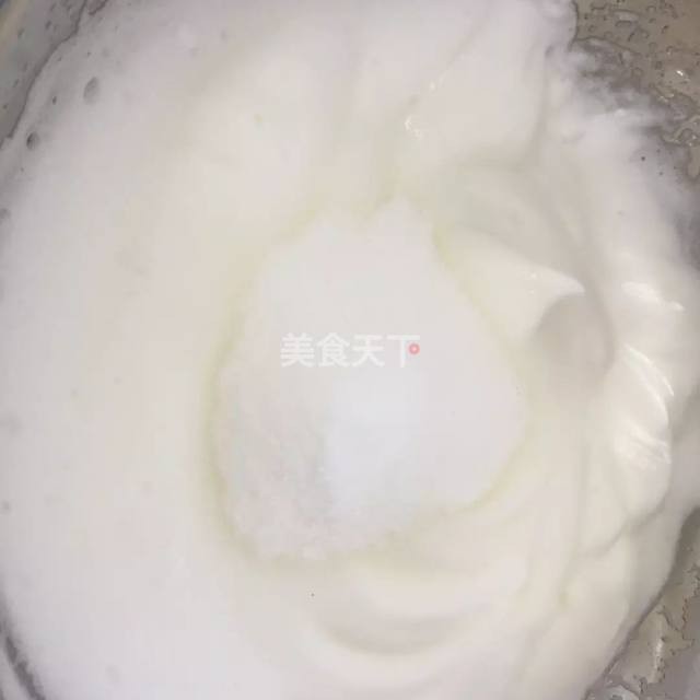 蛋分离,分别放入2个干净无油无水的盆中 先打发蛋白,分3次加入40克糖粉,打到干性发泡为止