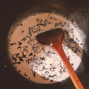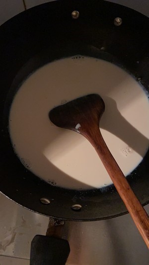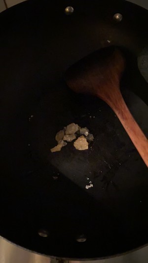 放入少许黄糖(白砂糖也可以),炒至金黄色融化。