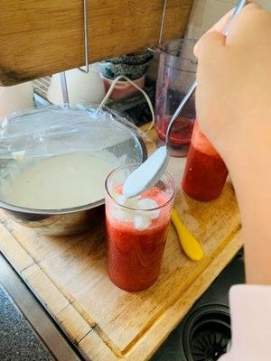加入冰块,做简单装饰,芝芝莓莓即完成了。