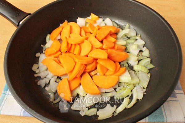 将肉放在一边,盖上盖子。 同时,将洋葱和胡萝卜保存在植物油中。 我建议切碎的蔬菜不要过多,以免在锅中煮熟后变质。