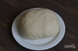 将面粉通过筛子筛入干净的碗中,然后与盐混合。 然后将鸡蛋打入面粉中,加水。 揉成一个密实而有弹性的面团,放入袋子中,放在冰箱中放置半小时。
