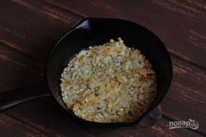 将黄油和油放在煎锅中。 将它们在炉子上预热。 将洋葱去皮并切丁切丁。 用中火炒至金黄色。