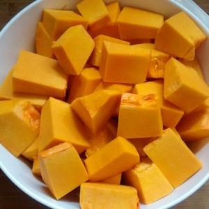 南瓜去皮洗净,切成小块放入碗中