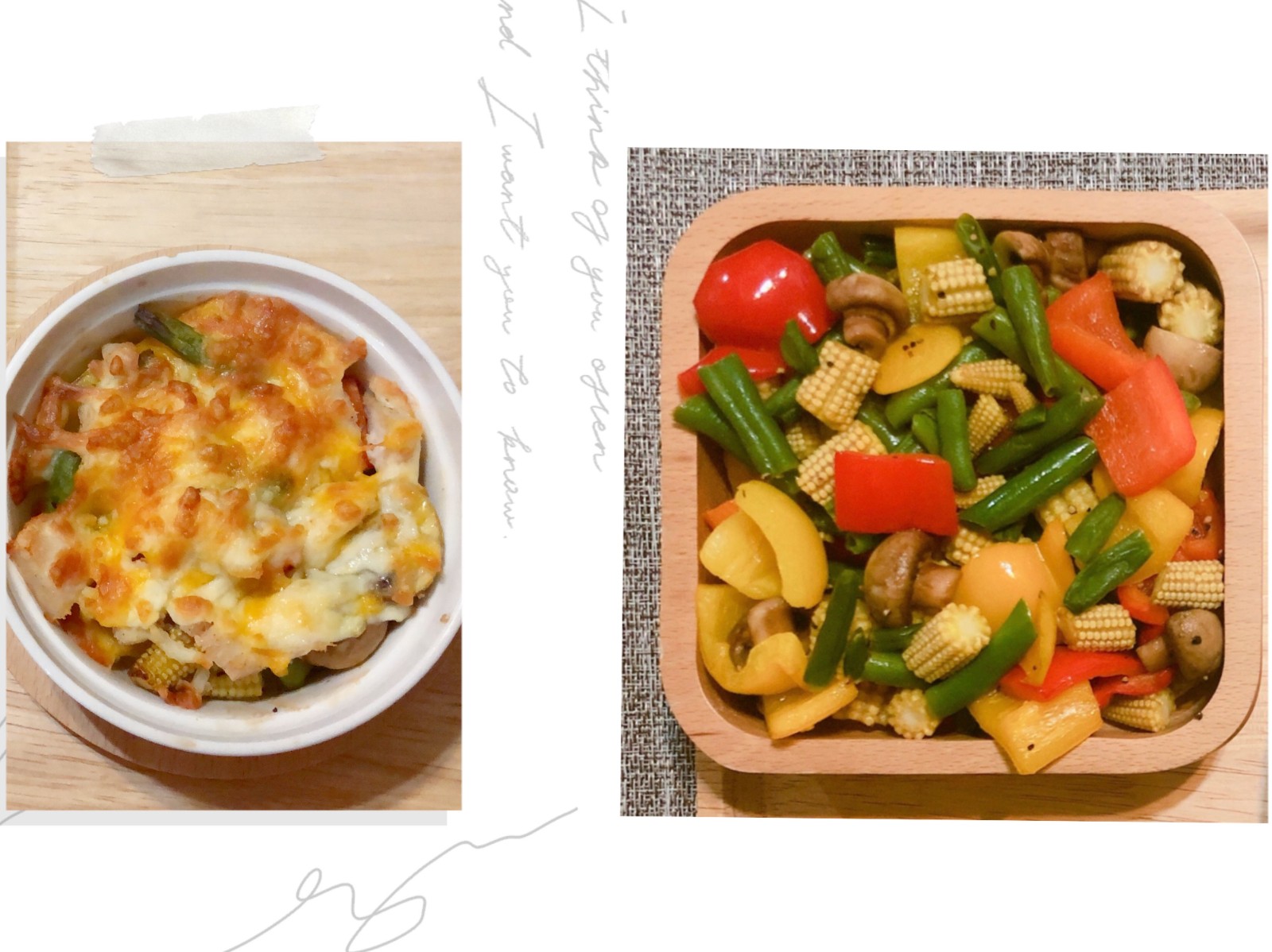 把所有蔬菜放进碗里,淋上酪梨油及撒上适量海盐、黑胡椒粒、迷迭香,拌匀,让每一块蔬菜都均匀分布到油